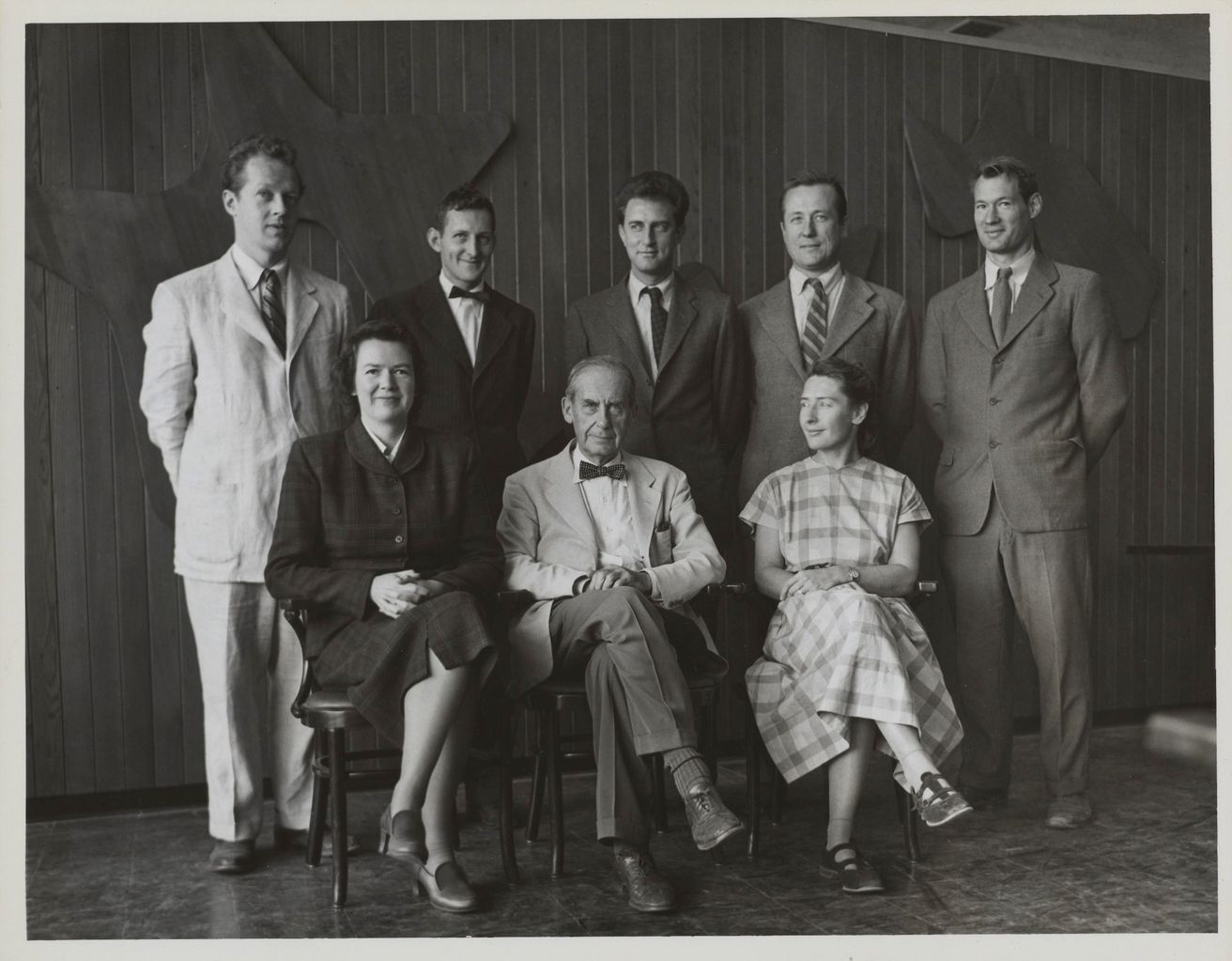 TAC founding members from left to right: (top) Robert S. McMillan, Norman C. Fletcher, Benjamin Thompson, Louis A. McMillen, John C. Harkness, (bottom) Jean B. Fletcher, Walter Gropius, Sarah Harkness. Photo sourced by Architectuul.com.