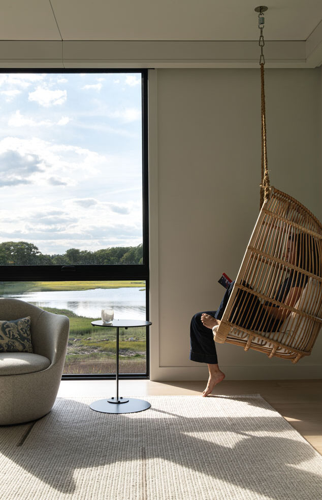 The floor-to-ceiling windows in the new addition connect you to the adjacent tidal marsh. Our expansion of the structure uses the same visual language as the original home - strong horizontals, galvanized steel, dark cladding, and Western red cedar soffits. Our design process begins with learning about our client’s daily patterns and translating those patterns into a vision for the home and property, building houses that fit the lives of our clients. As our client’s needs changed, Flavin Architects could remain a trusted partner to help adapt the property over time.
